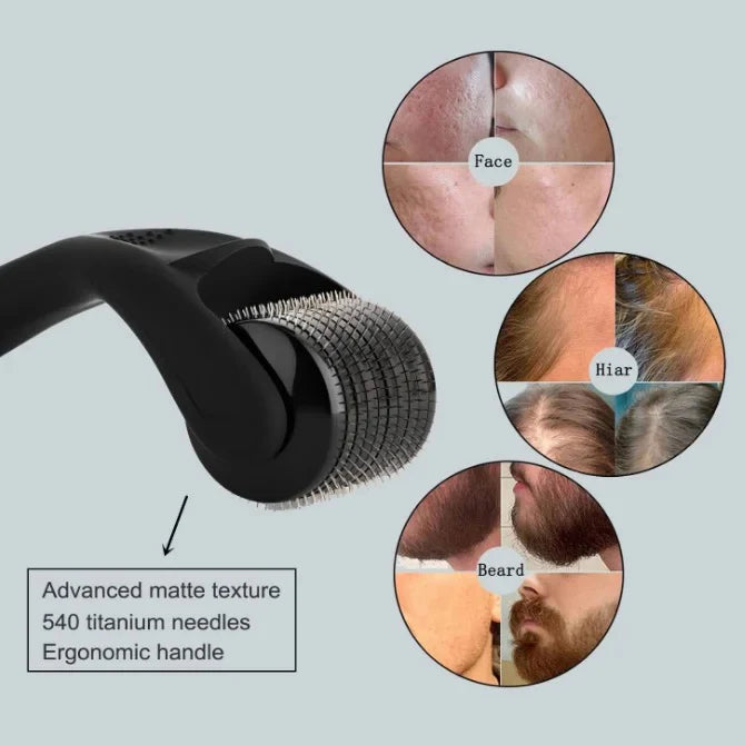 Unlock the secret to natural hair growth with our dermaroller. The micro-injuries induced by the 540 titanium needles trigger the body's healing response, leading to the release of growth factors and the generation of new cells. This process revitalizes hair follicles and promotes thicker, healthier hair.