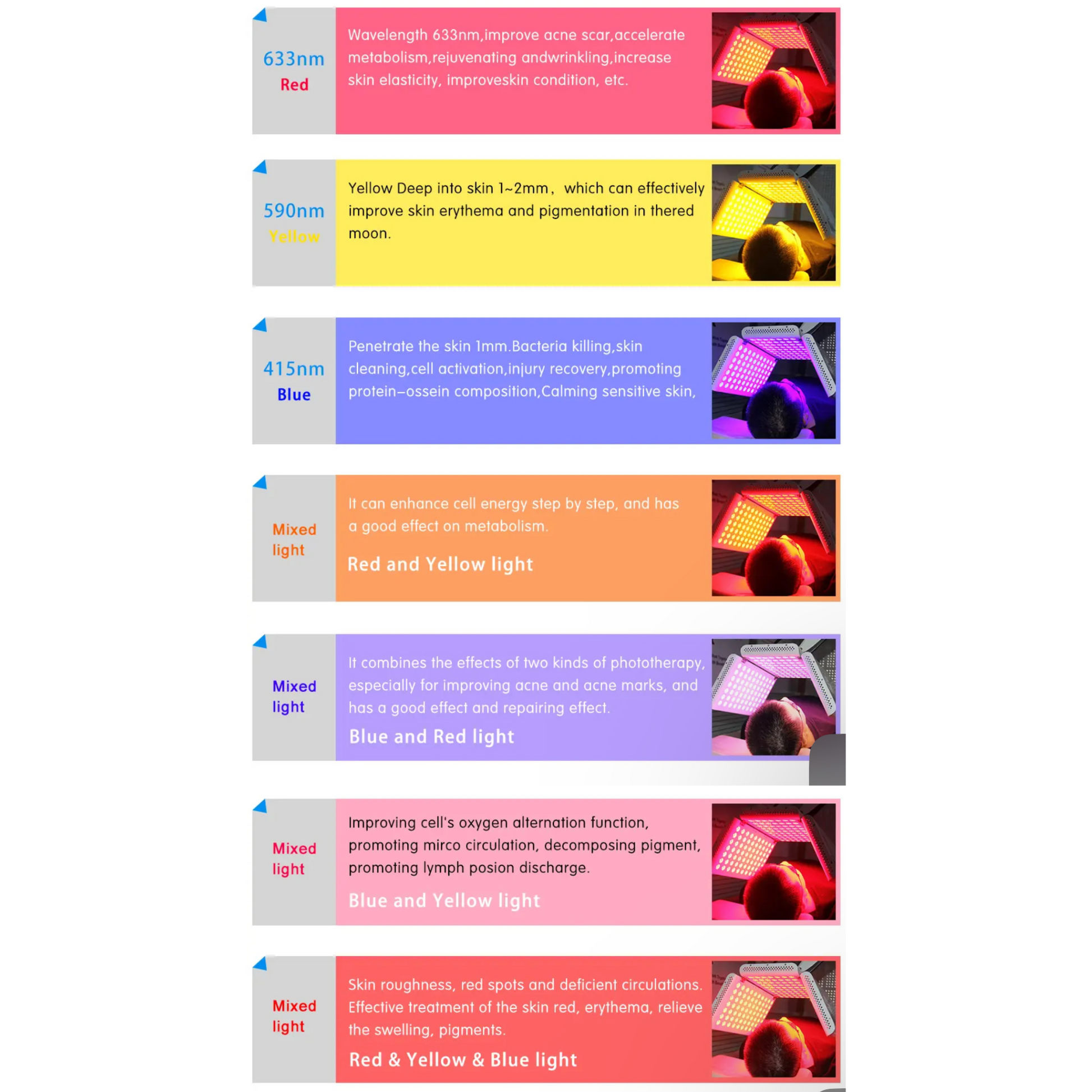 🟡 Yellow (590nm): Reduce redness from skin, reduces pigmentation anti-aging, anti-inflammatory