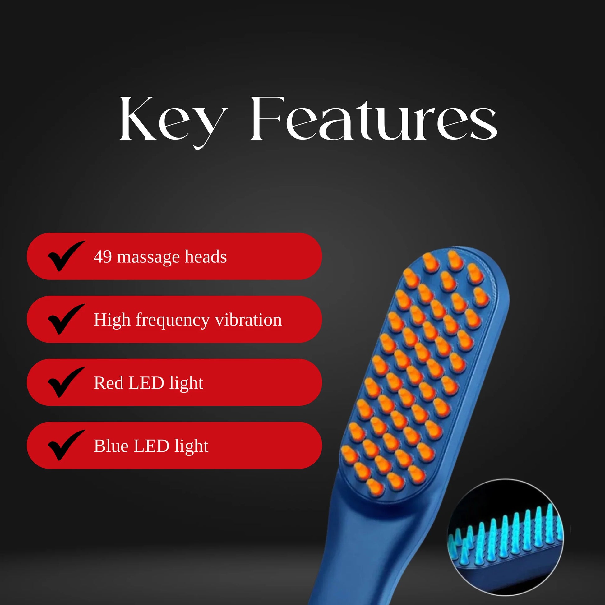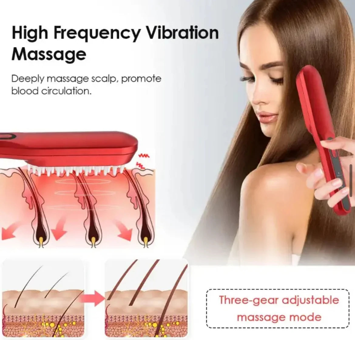Introducing our revolutionary Red and Blue Light Therapy Vibrating Hairbrush, designed to rejuvenate your hair health like never before.